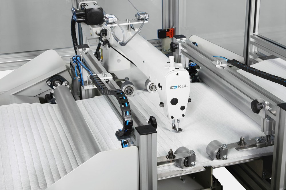 Alle Nähanlagen sind kompakte Einheiten für ein prozesssicheres, wiederholgenaues Arbeiten. Die Maschinen werden individuell mit den Kunden geplant und in dessen Produktion implementiert