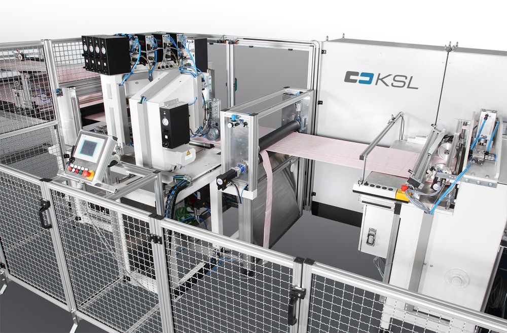 The KL 980 is a high-efficient and full-automatic manufacturing unit for manufacture single filter pockets, e.g. for the air filtration industry. The systems have a modular structure and can be configured and implemented individually according to customer requirements (material and application). They are fully SPS S7 controlled and operated via a modern HMI panel